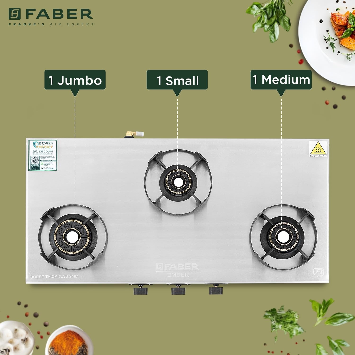 Burner Type1 Jumbo + 1 Medium + 1 Small